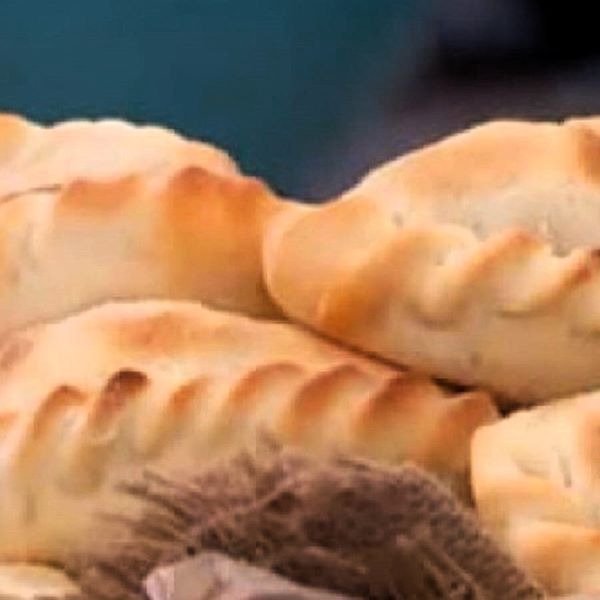 Masa casera a partir de harina blanca y relleno de pollo de campo y cebollas.